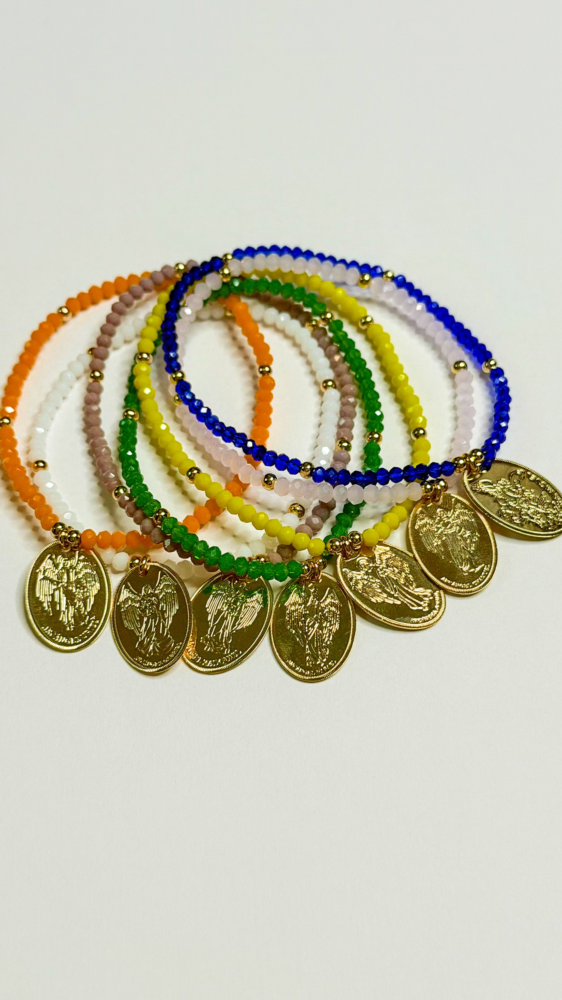 ✨Conéctate con la energía divina con este hermoso Set de Pulseras 7 Arcángeles, elaborado a mano con cristales y dijes representativos de cada arcángel.